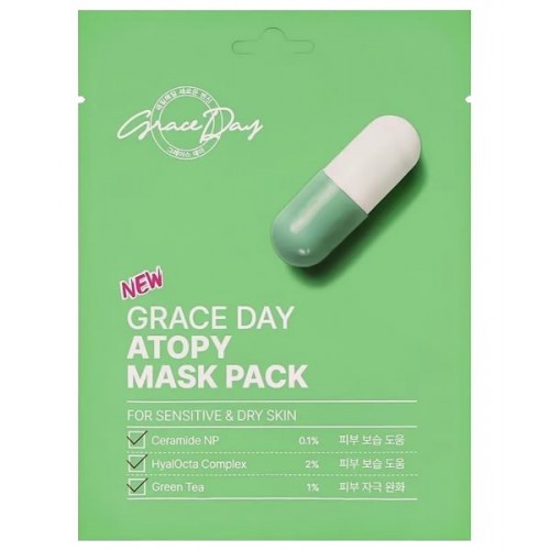 Grace Day Atopy Mask Pack — тканевая маска, специально разработанная для чувствительной, обезвоженной и раздражённой кожи. Она помогает восстановить защитный барьер, успокаивает и увлажняет. Среди активных компонентов — пантенол и масла оливы, известных своими смягчающими и защитными свойствами.