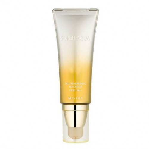 Восстанавливающий ББ-крем Missha Super Aqua Cell Renew Snail B.B Cream, в основе которого улиточный экстракт и глубоководная морская вода. Улиточный ББ-крем позволяет не только замаскировать кожные несовершенства, но и оздоравливает кожу, способствует ее увлажнению, восстановлению и омоложению.